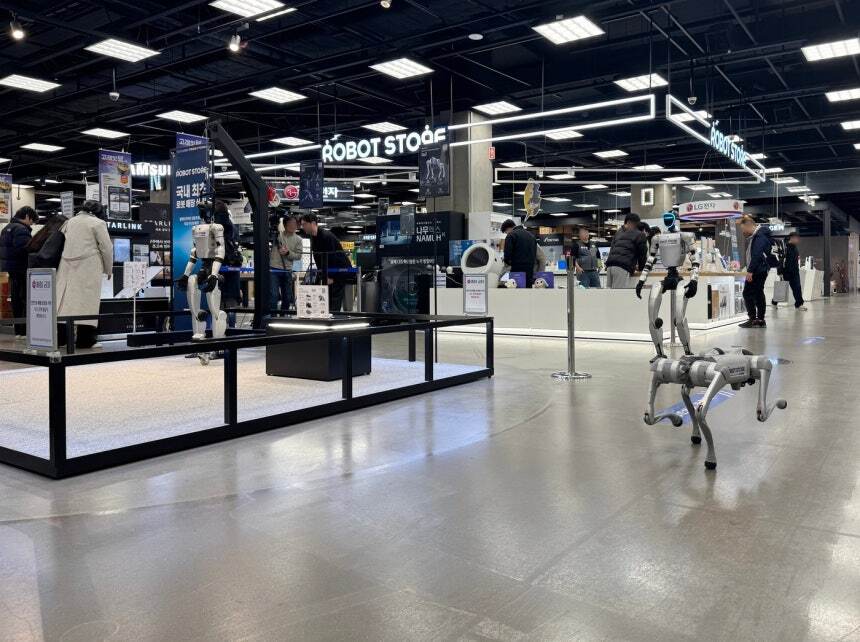 31일 업계에 따르면 일렉트로마트 영등포점 매장 내 구성된 로봇 시연 존에서는 사람처럼 움직이는 '휴머노이드 로봇'과 '4족 보행로봇'을 직접 만나볼 수 있다.