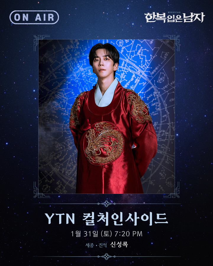 신성록은 오는 31일 오후 7시 20분 방송되는 YTN 문화 전문 프로그램 '컬처INSIDE'의 '초대석' 코너에 출연한다. 이번 방송에서 그는 드라마와 무대를 오가며 독보적인 존재감을 과시해온 자신의 연기 여정과 현재 뜨거운 사랑을 받고 있는 뮤지컬 '한복 입은 남자'에 대한 비하인드 스토리를 가감 없이 공개할 예정이다.