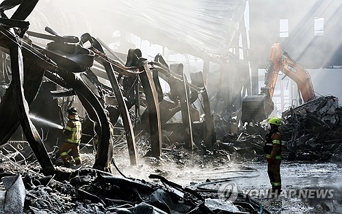 (음성=연합뉴스) 박건영 기자 = 충북 음성군 맹동면 생활용품 제조 공장 화재로 실종됐던 외국인 근로자 2명은 폐기물 처리업무에 투입된 외주업체 직원이었던 것으로 파악됐다.