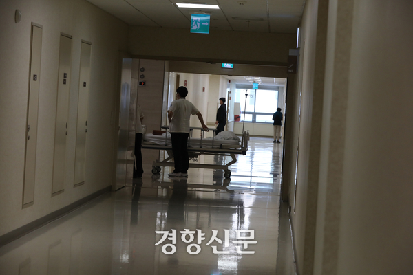 의사 자격이 없는 사람이 면허를 대여해 불법 운영하는 사무장 병원에 명의를 빌려준 의료인이 대부분 60대 이상인 것으로 확인됐다. 사진은 한 대형 병원에서 의료진이 환자를 옮기는 모습이다. 정효진 기자 |