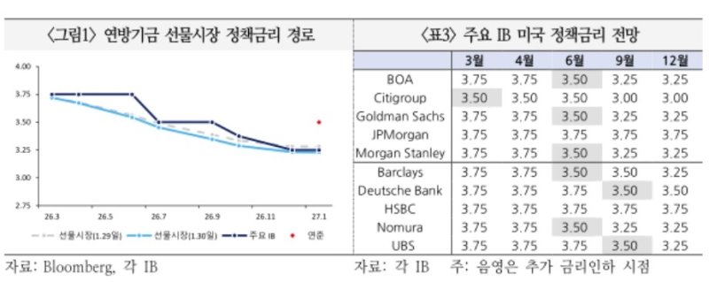 국제금융센터에 따르면 주요 IB 8곳 중 5곳은 미 연준이 올해 6월 기준금리를 연 3.50∼3.75%에서 3.25∼3.50%로 0.25%p 인하할 것이라고 예상했다.