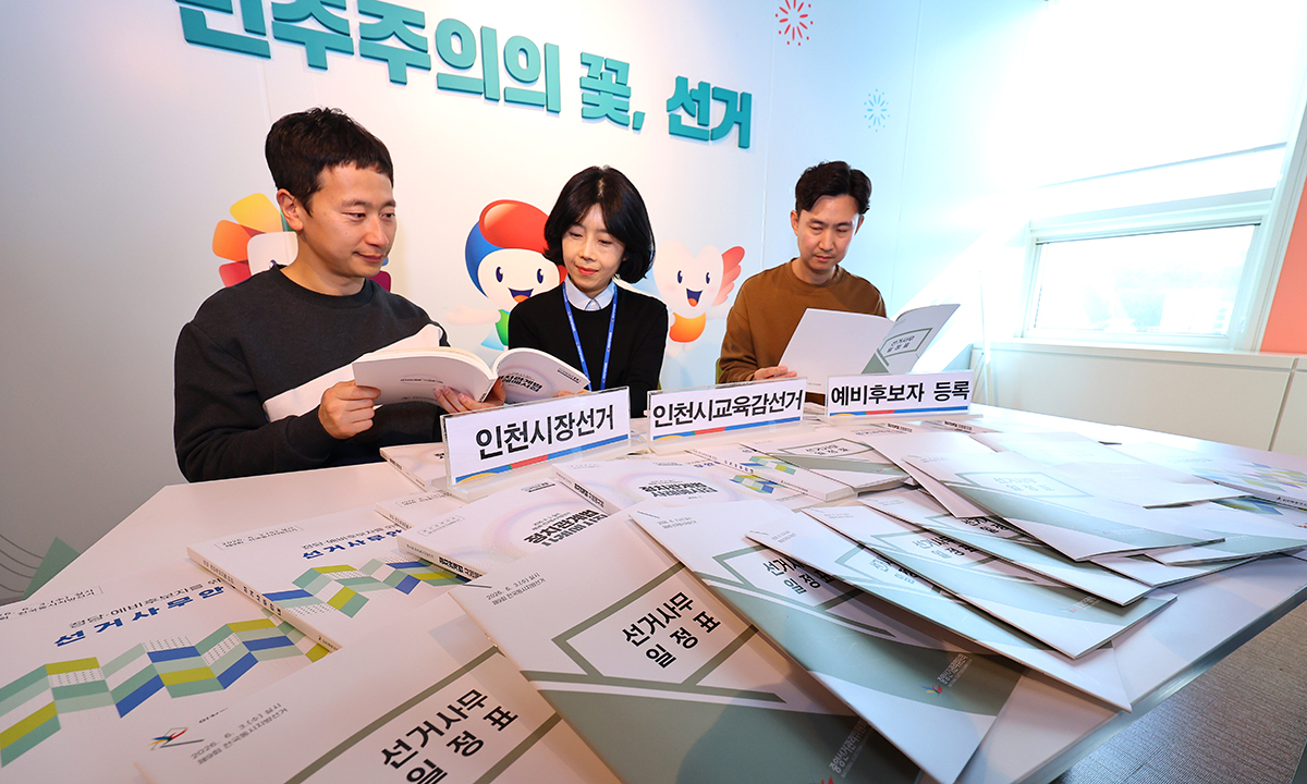 6월 3일 실시되는 제9회 전국동시지방선거 시·도지사 및 교육감 선거 예비 후보자의 등록 시작(2월3일)을 앞두고 지난 1월 28일 인천 미추홀구 인천시 선거관리위원회에서 직원들이 후보자와 각 정당에 전달할 선거 사무 안내 및 선거법 안내 책자를 점검하고 있다. 인천=연합뉴스 |