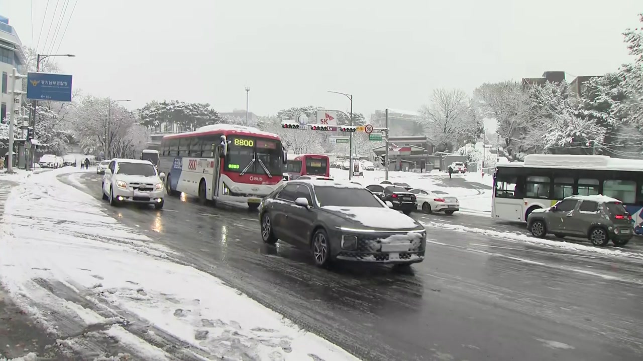출근길부터 교통 혼잡이 빚어지고 있고, 미끄럼 사고도 잇따랐습니다.