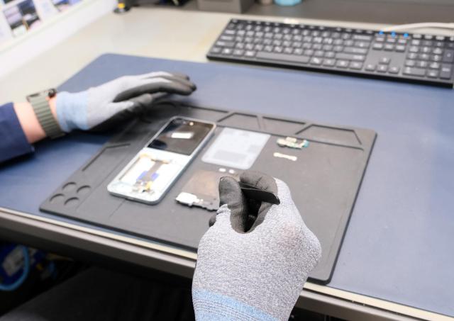 폴더블폰 디스플레이 단품 수리는 디스플레이 전체를 교체하는 방식과 달리 디스플레이 부품, 테두리, 케이스 등을 정밀 분해해 교체가 필요한 부품만 선별적으로 변경하는 고도화된 서비스다. 2024년 업계 최초로 서비스센터 13곳에 폴더블폰 디스플레이 단품 수리를 시작한 후 현재 대부분의 서비스센터에 도입했다.