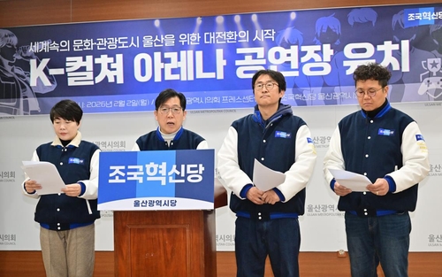 (울산=연합뉴스) 허광무 기자 = 조국혁신당 울산시당은 2일 "울산에 5만석 규모의 '국립 K팝 아레나'를 유치해야 한다"고 주장했다.