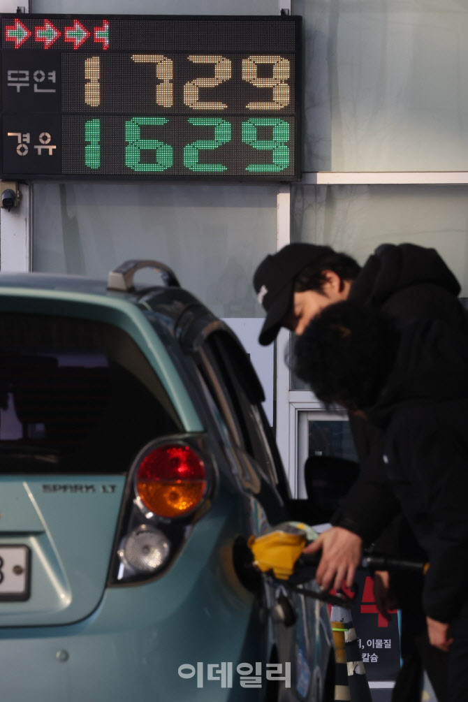 [이데일리 이영훈 기자] 서울 한 주유소에 유가 가격표가 붙어 있다. |