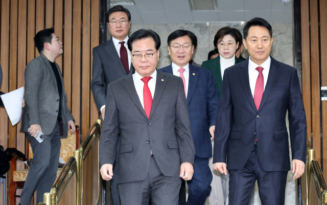 ▲송언석 원내대표(왼쪽)와 오세훈 서울시장이 2일 국회에서 열린 '국민의힘-서울특별시 부동산정책협의회'에 참석하고 있다. ⓒ연합뉴스 |