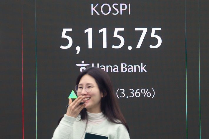 코스피가 상승 출발하며 5천선을 하루 만에 재탈환한 3일 서울 중구 하나은행 딜링룸에서 직원이 업무를 보고 있다. 연합뉴스 |
