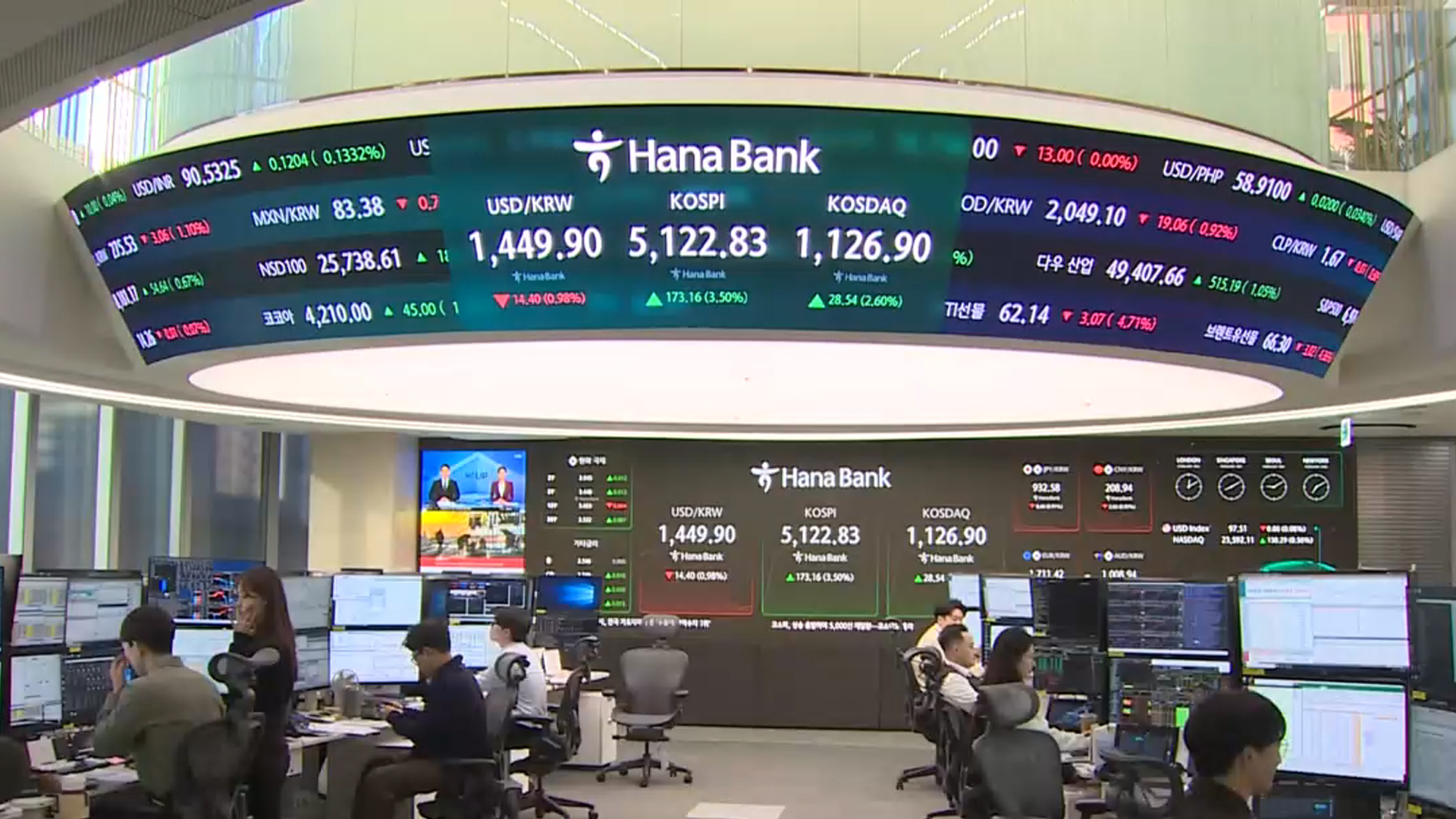 코스피는 이날 5,200선 근처까지 치솟으며 전날 5,000선 밑으로 마감한 지 하루 만에 급반전했습니다.