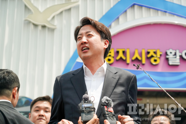 ▲지난해 5월 부산 강서구 명지시장을 찾은 이준석 개혁신당 대표.ⓒ프레시안(강지원) |