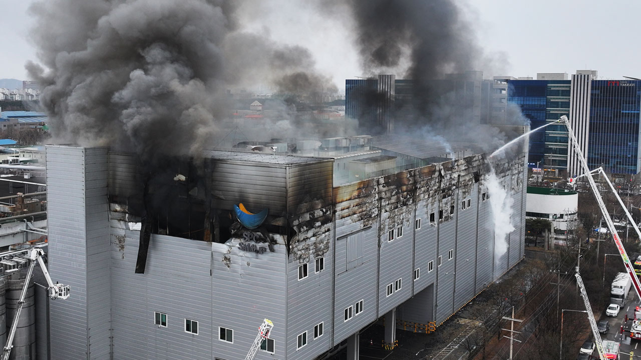 네, 불길은 어느 정도 잡힌 모습이지만, 건물 상단부에서는 짙은 연기가 새어 나오고 있습니다.
