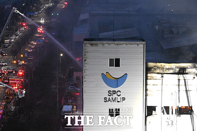 [더팩트 | 시흥=송호영 기자] 3일 오후 2시 59분께 경기 시흥시 정왕동 SPC삼립 시화공장에서 화재가 발생한 가운데 소방 당국이 화재를 진압하고 있다.