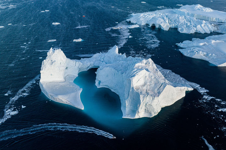 [일룰리사트=AP/뉴시스] 29일(현지 시간) 그린란드 일룰리사트 인근 디스코만에서 선박 한 척이 빙산 앞을 지나가고 있다. 2026.01.30. |