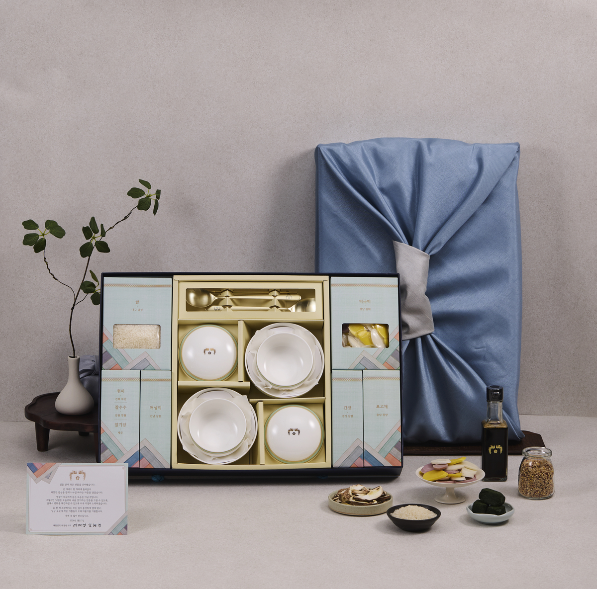 선물은 그릇·수저 세트와 집밥 재료로 구성됐다. 특별 제작된 그릇·수저 세트에는 편안한 집밥이 일상이 되고, 소박하지만 따뜻한 한 끼가 국민 모두의 삶에 평온과 위로가 되길 바라는 대통령의 의지를 담았다.