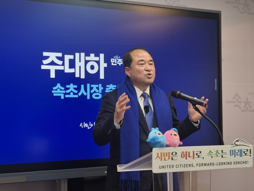 (속초=연합뉴스) 류호준 기자 = 더불어민주당 주대하 전 강원도의원이 6·3 지방선거 속초시장 출마 선언을 했다.