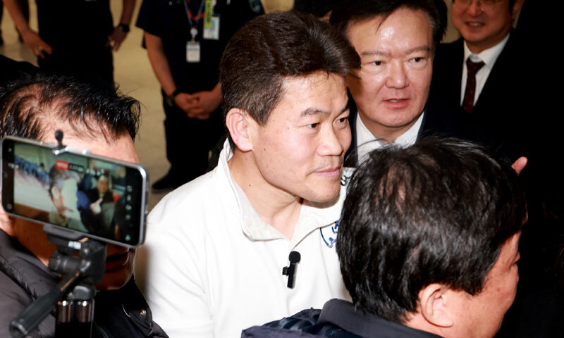 전한길 전 한국사 강사가 3일 인천국제공항 제2여객터미널을 통해 귀국하고 있다. 뉴스1 |
