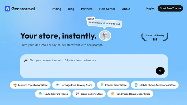 [디지털투데이 AI리포터] AI 스타트업 젠스토어AI(Genstore.ai)가 AI 에이전트를 활용해 코딩 없이 온라인 스토어를 신속하게 구축하고 운영할 수 있는 전자상거래 플랫폼을 제공한다.