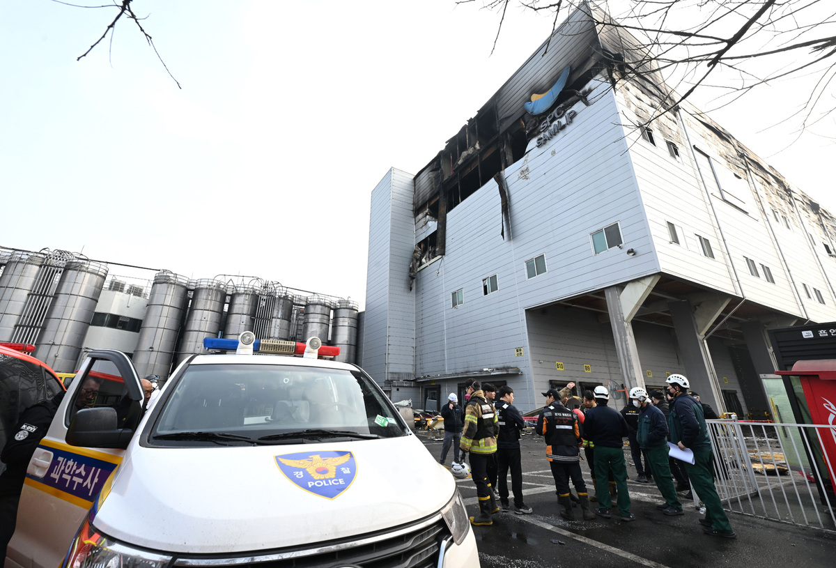 경찰과 소방 등 관계자들이 4일 경기 시흥시 정왕동 SPC삼립 시화공장에서 합동 감식을 위해 이동하고 있다. 뉴시스 |