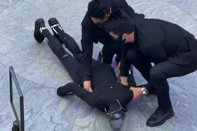지난달 31일 샤오펑의 차세대 휴머노이드 로봇 ‘아이언’(Iron)이 공개 시연 도중 바닥에 쓰러졌다. 영상 캡처 |