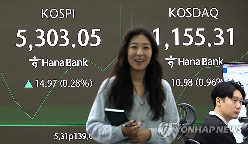 장중 5,300 돌파한 코스피 |