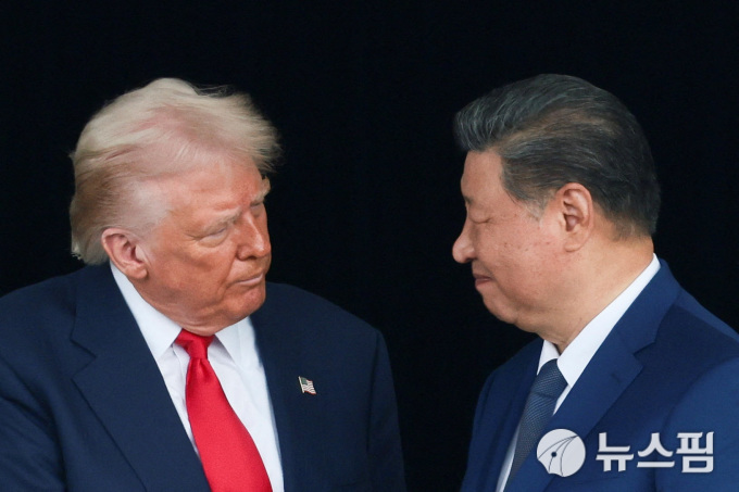 도널드 트럼프 미국 대통령과 시진핑 중국 국가주석이 지난해 10월 30일 부산 김해국제공항에서 정상회담을 한 뒤 인사를 나누고 있다. [사진=로이터 뉴스핌] 2025.10.30 |