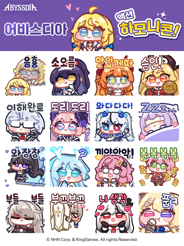 이와 함께, 카카오톡 이모티콘 제공 이벤트도 진행 중이다. ‘어비스디아’의 주요 캐릭터들로 제작된 웹툰풍의 액션 이모티콘으로, 카카오게임 사전예약을 통해 ‘어비스디아’의 사전등록을 완료한 이용자에게 선착순으로 실시간 지급된다. 이모티콘은 다운로드 후 30일간 사용 가능하다.