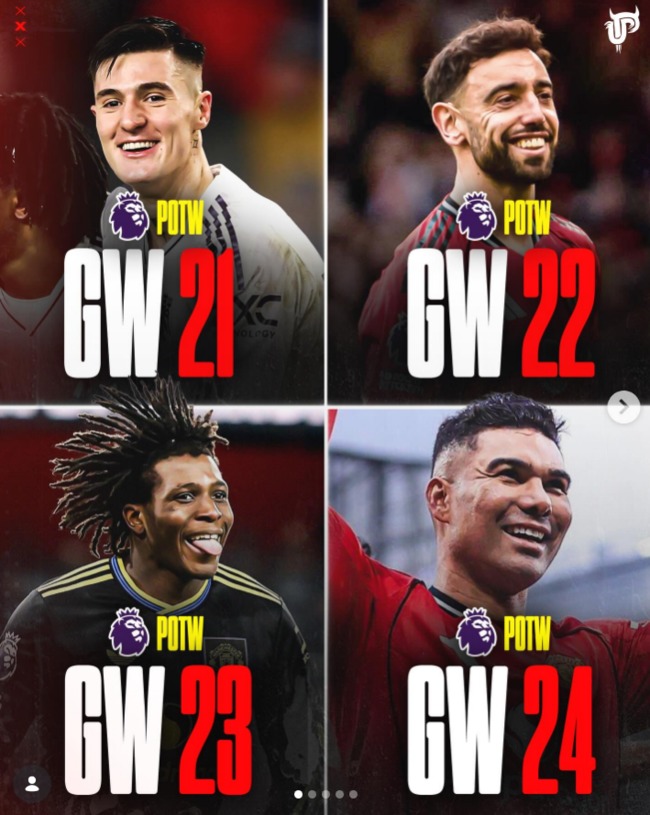 카세미루가 24라운드 이주의 선수에 선정되면서 맨유는 4주 연속 이주의 선수를 배출한 팀이 됐다.