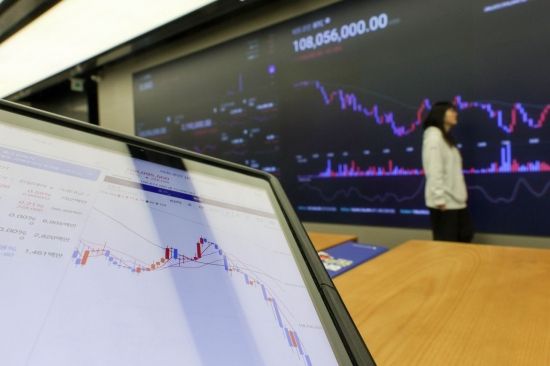 비트코인이 한때 7만2000달러 선까지 떨어지며 15개월 만에 최저 수준을 기록한 가운데 5일 서울 강남구 업비트 고객센터 전광판에 비트코인 시세가 표시돼 있다.
