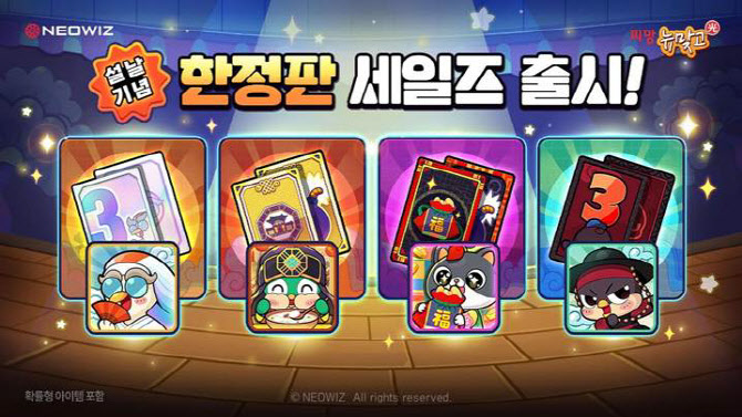 먼저, 보드게임 ‘피망 뉴맞고’는 설 한정 상품을 선보인다. 한정 상품 판매는 이날부터 다음달 5일까지 총 4주간 진행되며, 설날을 테마로 한 프로필과 화투패를 매주 만나볼 수 있다. 이번 한정 상품에는 ‘떡국 도리 프로필’, ‘복주머니 화투패’ 등 신규 상품은 물론, 유저들에게 큰 인기를 얻었던 ‘산신학이 프로필’, ‘흑광 화투패’ 등 베스트셀러 상품을 포함해 선택의 폭을 넓혔다. 모든 상품은 한정판으로, 품절 시 이벤트는 조기 종료된다.