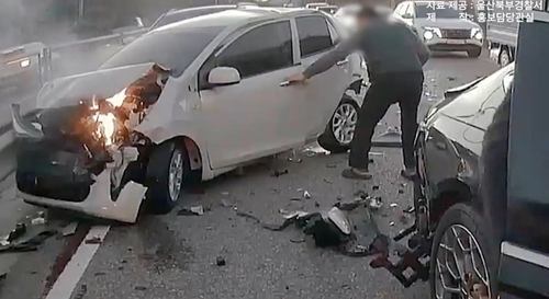 울산서 추돌사고로 불…지나던 카니발 운전자가 소화기로 꺼