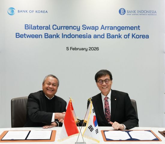 한국은행은 5일 이창용 한은 총재와 페리 와르지요(Perry Warjiyo) 인도네시아 중앙은행 총재가 원·루피아 통화스와프 계약을 5년 연장했다고 밝혔다. 이번 계약 연장에 따라 양국 중앙은행은 2031년 3월5일까지 10조7000억원·115조루피아까지 상호 자금 지원이 가능해졌다.