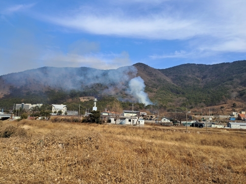 (창원=연합뉴스) 정종호 기자 = 5일 오후 1시 57분께 경남 창원시 마산합포구 진동면 사동리 한 야산에서 불이 났다.