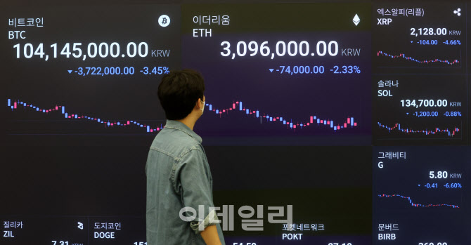 [이데일리 방인권 기자] 비트코인이 아시아·미국 기술주 급락 여파로 7만 1,000달러 선 아래로 밀리며 약세흐름을 이어가고 있는 5일 서울 강남구 역삼동 암호화폐(가상화폐) 거래소 업비트 라운지 시세 전광판에 비트코인을 비롯한 주요 가상화폐 시세가 표시되고 있다.