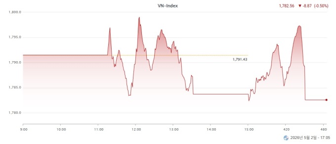 VN지수는 이날 큰 폭의 변동성을 보였다. 시가총액이 큰 빈그룹(Vingroup) 종목들이 전날의 부진세를 떨치고 반등했지만 지수 하락세를 반전시키기에는 역부족이었다.