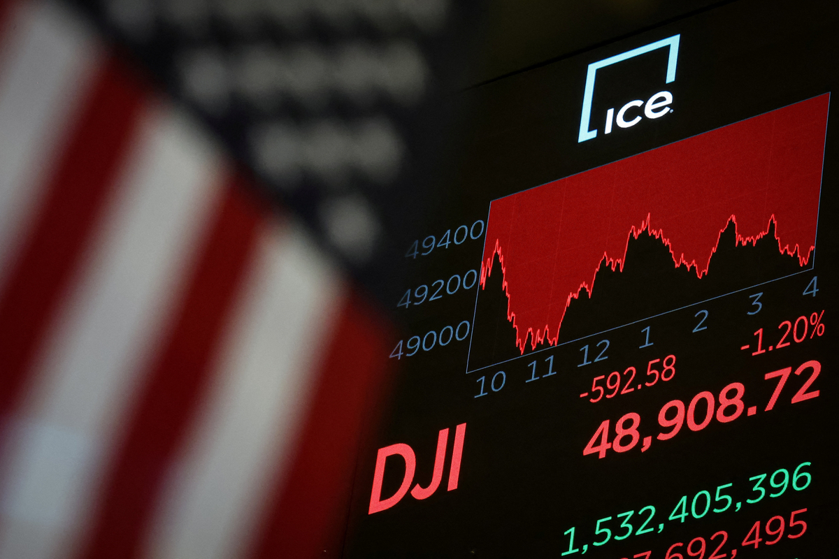 5일(미국 동부시간) 뉴욕증시에서 다우존스30 산업평균지수는 전장보다 592.58포인트(-1.20%) 내린 48908.72에 거래를 마감했다. 스탠더드앤드푸어스(S&P) 500지수는 전장보다 84.32포인트(-1.23%) 내린 6798.40에, 기술주 중심의 나스닥 종합지수는 전장보다 363.99포인트(-1.59%) 내린 22540.59에 각각 마쳤다.