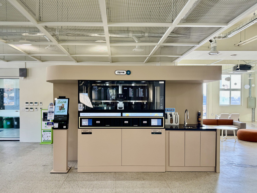 캠퍼스 선감생활동 1층에 위치한 '갯벌카페'는 키오스크와 모바일 기기로 주문이 가능하며, 주문부터 결제, 음료 제조, 픽업까지 전 과정이 자동화된 무인 로봇카페다. 원격 관리와 정기 점검으로 위생적이고 안정적인 운영 환경을 유지하며, 균일한 품질의 음료를 제공한다.