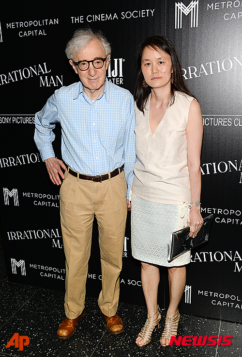 【뉴욕=AP/뉴시스】미국의 영화감독 우디 앨런(80)이 15일 부인 순이 프레빈(45)과 함께 자신의 신작 '비합리적인 남자'(Irrational Man) 특별 시사회장인 뉴욕 현대미술관을 찾았다. 앨런 감독은 두 번 이혼한 뒤, 역시 두 번 이혼한 여배우 미아 패로(70)와 사귀었다. 그러다가 패로가 두번째 남편 앙드레 프레빈(86·피아니스트)과 함께 입양한 한국 태생 순이와 1997년 결혼했다. 앨런·순이 부부는 입양한 두 딸을 키우고 있다. reap@newsis.com |
