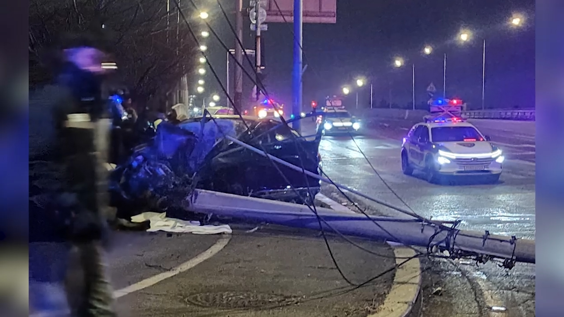사고 충격으로 전봇대가 부러졌고, 승용차 앞부분은 형체를 알아보기 어려울 정도로 크게 파손됐습니다.