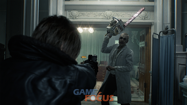 이번 작품은 더블 주인공 체제를 통해 그레이스의 공포 플레이와 레온의 액션 플레이를 강하게 대비시킨 인상을 받았습니다. 서로 다른 플레이 감각을 하나의 게임 안에서 조화시키는 과정에서 어떤 점이 어려웠는지, 또 각 주인공의 능력치나 플레이에 둔 제한은 어떤 기준으로 마련하였는지 소개해주실 수 있을까요 레퀴엠 개발팀: 서로 다른 플레이 감각을 하나의 게임에 넣는 것에 대해서는, 처음에는 저희도 역시 우려를 하고 있었습니다. 플레이어가 혼란스러워 하지 않을지, 둘 중 하나만 있으면 되지 않을지 고민했습니다만, 실제로 해보니 위화감 없이 즐길 수 있었고 심지어 둘 중 하나만 있었다면 맛볼 수 없는 재미가 있었습니다.