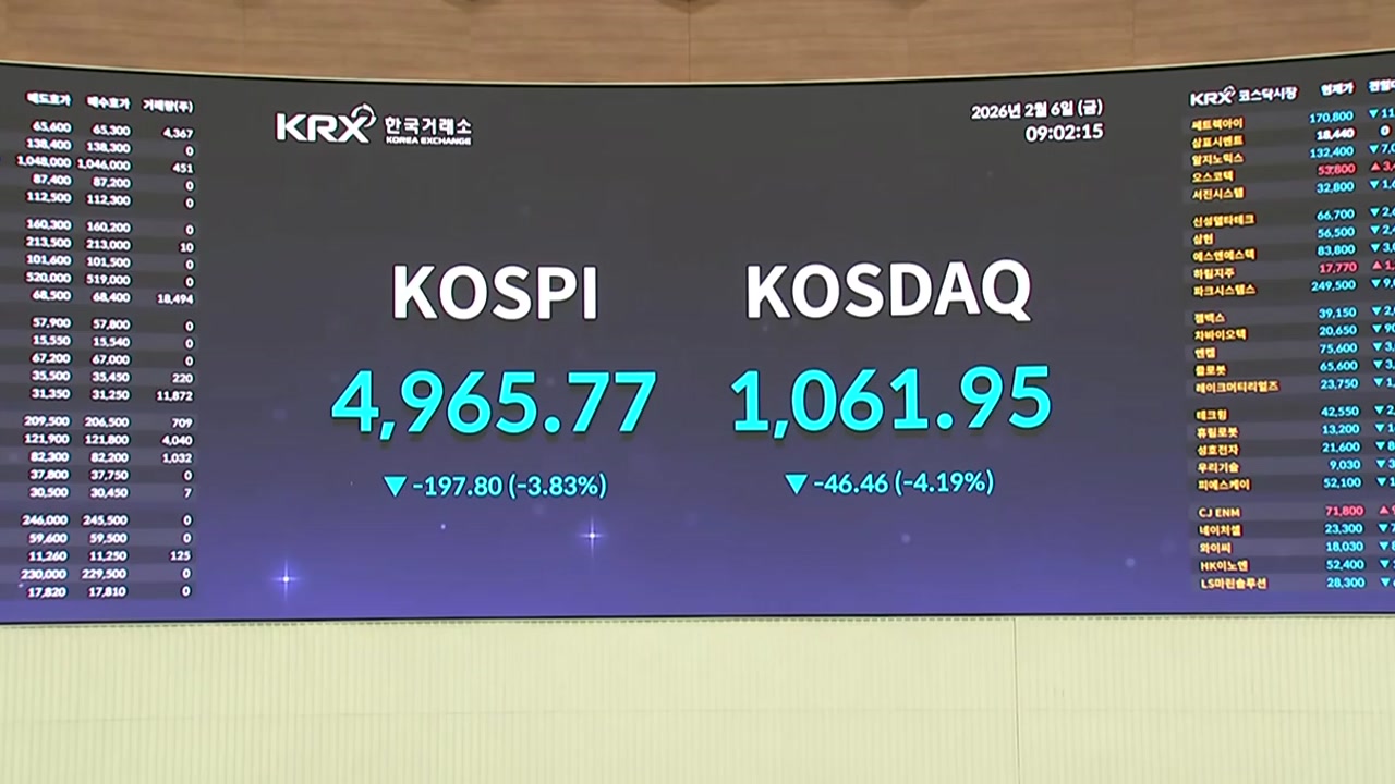 4899까지 갔지만 매도 사이드카가 걸렸습니다. 여러 가지 이유가 있겠지만 하나만 꼽으라면 AI 회의론 때문이다, AI 회의론이 불거졌다고 보면 될 것 같습니다. 그동안 AI 관련주들한테는 AI 거품론 이야기를 많이 했잖아요. 그런데 AI 거품론이 이제 AI 회의론으로 또 하나의 악재가 옮겨가는 건데요. 쉽게 말하면 이런 겁니다. 그동안에는 자본지출, 투자가 멈출 때 드디어 거품이 뻥 하고 터지고 AI 관련주들이 몰락할 것이다라고 이야기했는데요. 지금은 어떤 상황이냐면 AMD도 그렇고 오늘 실적 발표를 했던 아마존도 그렇고 오히려 자본지출, AI 관련 투자를 더 확대하겠다라고 말하면 그때부터 폭락을 합니다. 이게 왜 그런가? 실은 그저께 엔트로피락이라는 데서 클로드클락이라는 AI 솔루션 소프트웨어를 발표했는데 이 성능이 엄청나게 뛰어난 거예요. 이게 하나의 상징적인 건데 그러니까 투자자들은 이제 됐구나. 이것만 있으면 이 정도의 실력인데 여기에 왜 수십 조, 수백 조를 왜 투자하느냐? 그렇기 때문에 오히려 자본지출을 더 투자하는 것이 큰 의미가 있을까. 그렇기 때문에 더 많이 투자하겠다는 그 기업을 보고 주가가 10%씩, 15%씩 급락하게 되는. 조금 특이하죠. AI 거품론도 뛰어넘었는데 이제 AI 회의론이 불거지게 되니까 이렇게 파국이 나오게 된 것이고요. 우리 K반도체에는 어떤 영향이 되는가. 그동안 자본지출을 한다고 했기 때문에 그 소프트웨어 기업은 망하더라도 팔란티어는 주가가 폭락하더라도 결국 투자를 하게 되면 칩은 필요하고 AI칩에 들어가는 우리의 HBM 등의 메모리 반도체는 필요하다는 건데. 이런 식의 흐름이 AI 회의론이 가게 되면 드디어 자본지출을 줄이겠죠. 그러면 투자가 줄어들면 당연히 엔비디아 칩을 덜 사게 되겠고 그 AI집을 덜 사면 당연히 거기에 들어가는 메모리 반도체도 영향을 미친다는 이 논리 때문에 마이크론이 전날에 빠졌었고 간밤에 마이크론은 버텼었는데 시간외에는 빠지게 되고 이런 식으로 충격이 고스란히 삼성전자, SK하이닉스에 왔고 코스피도 함께 무너지는 모습이었다고 보시면 됩니다.