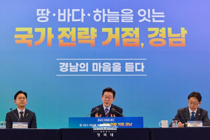 이재명 대통령이 6일 경남 창원컨벤션센터에서 열린 '경남의 마음을 듣다' 타운홀미팅에서 발언하고 있다. [사진=청와대] |