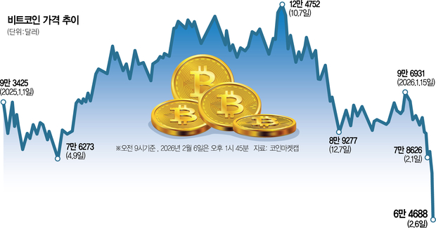 비트코인은 올 들어 25% 하락했다. 이날 오전 한때는 낙폭을 16% 이상 키우며 6만 달러 선이 위협받기도 했다. 지난해 10월 기록한 최고가와 비교하면 반토막 수준이다.