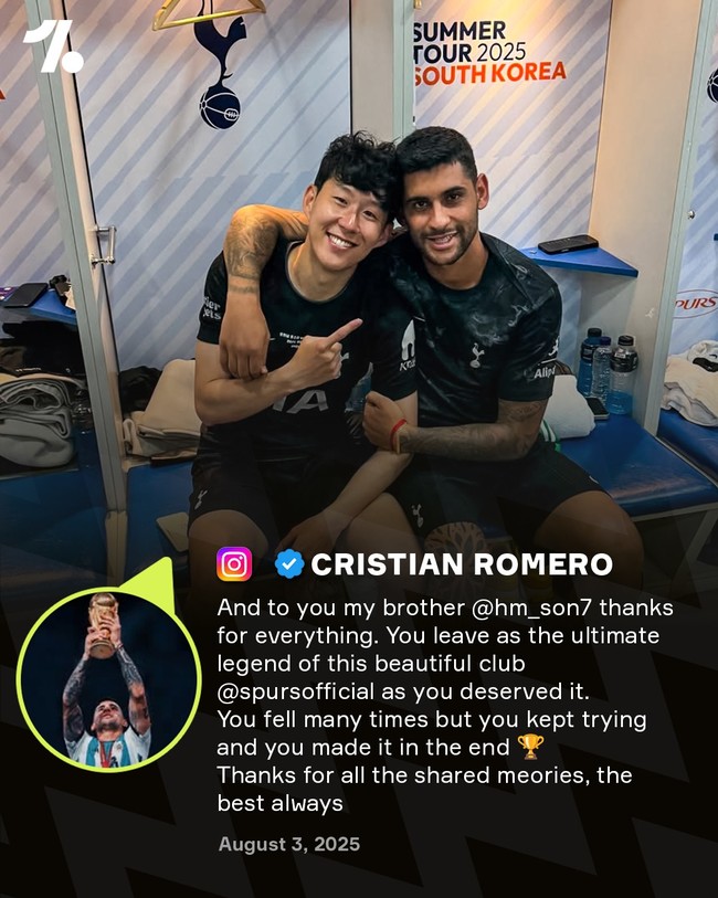 아르헨티나 국가대표 센터백 로메로. 올 시즌 손흥민의 뒤를 이어 토트넘 '캡틴' 자리에 올랐다. 손흥민과 버금가는 리더십을 기대받았지만, 선수단과 감독 간의 이상 기류, 잦은 인터뷰 거절 등으로 인해 '리더'로서 여러모로 아쉬운 모습이다.