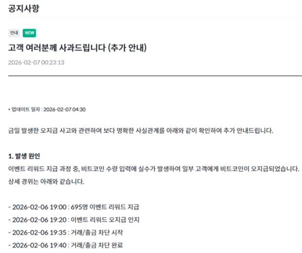 단순 실수가 수천억 사고로…빗썸 오지급 사태 정리