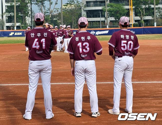정현우는 이날 함께 선발투수로 중요한 역할을 해야하는 안우진, 하영민과 함께 먼저 훈련을 마무리하고 동료 투수들의 훈련을 지켜봤다. 2년차 시즌을 보내는 정현우는 “작년에는 5이닝을 채우지 못하고 내려온 경기가 많았다. 그런 강판을 당하는 횟수를 줄이고 최대한 5이닝은 던지는 것을 목표로 하고 있다. 나도 당연히 우진이형, (하)영민 선배님처럼 확실한 선발투수가 되고 싶은 욕심이 있다”며 올해는 자신의 자리를 확실히 만들겠다고 다짐했다. /fpdlsl72556@osen.co.kr