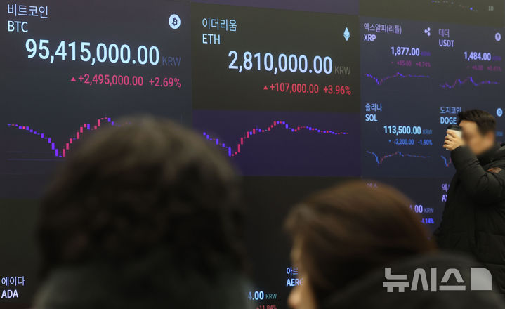 [서울=뉴시스] 권창회 기자 = 비트코인이 급락하며 1억원 대가 깨진 6일 서울 강남구 업비트 고객센터 전광판에 비트코인 등 암호화폐 시세가 나오고 있다. 2026.02.06. kch0523@newsis.com |