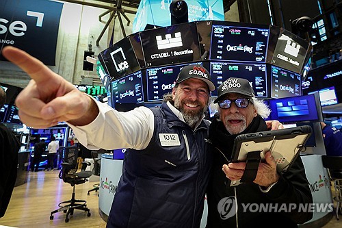 다우지수가 50,000선을 돌파하자 환호하는 뉴욕증권거래소(NYSE)의 트레이더들 |