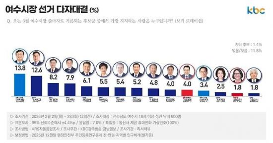 여수시장 선거 다자대결(KBC광주방송과 광남일보 실시한 여론조사). 중앙선거여론조사심의위원회 제공 |