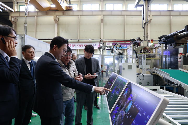 [서울=뉴시스] 과학기술정보통신부는 지난 6일 경남 창원 소재 신성델타테크를 방문해 피지컬 인공지능(AI) 사전검증 사업 성과를 점검하고 현장 간담회를 개최했다고 8일 밝혔다. 사진은 배경훈 부총리가 이날 신성델타테크 현장을 둘러보는 모습. (사진=과기정통부 제공) 2026.02.08. photo@newsis.com *재판매 및 DB 금지 |