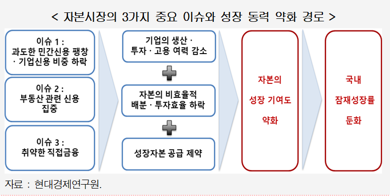 대출 중심의 자금 구조에서는 담보가 부족한 초기 기업이나 신산업에 모험자본이 공급되기 어렵다고 보고서는 지적했다.
